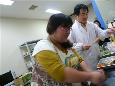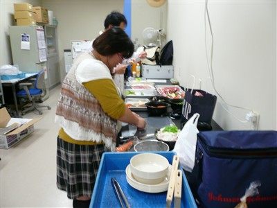 理化学実験研究室で,食材の準備。