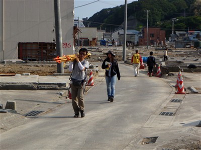今回は,宮古市愛宕地区と鍬ヶ崎地区での津波浸水深の測量です。