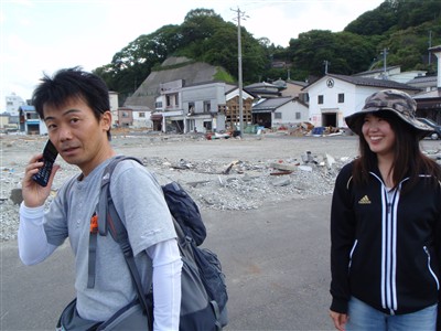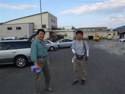 2011年6月14日 岩船先生の調査を手伝いに宮古市へ 吉木,今野(4年),岩船先生(志學館大学)