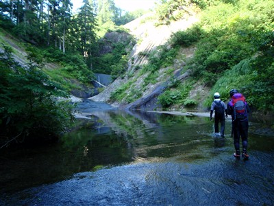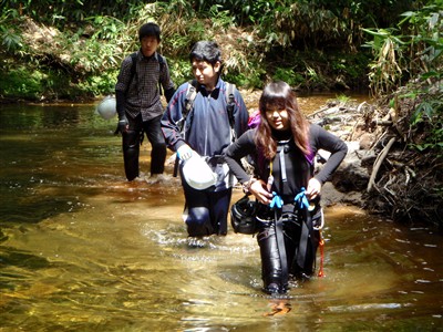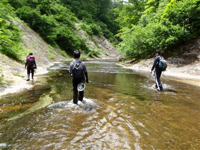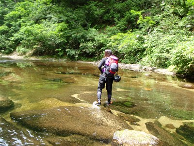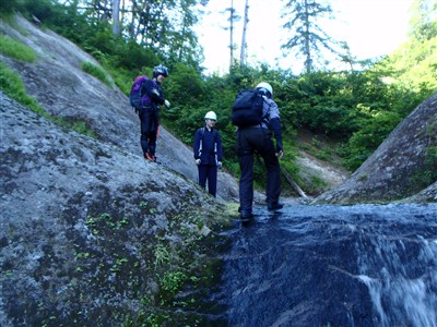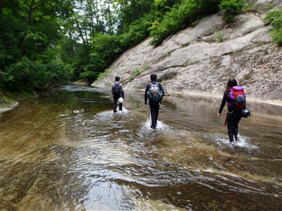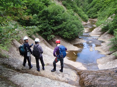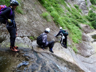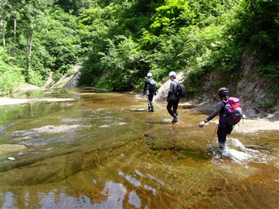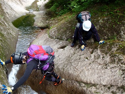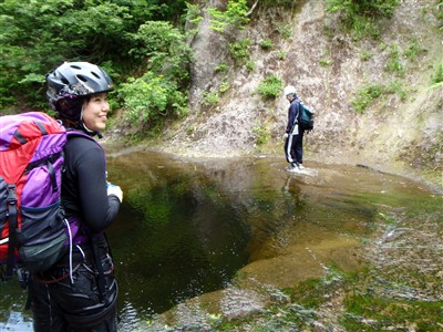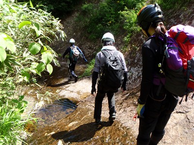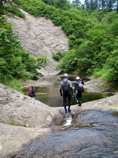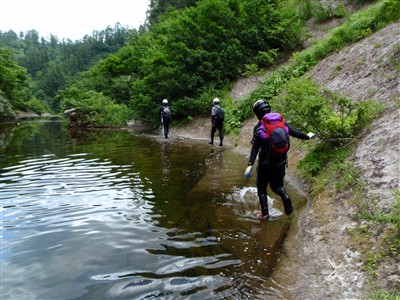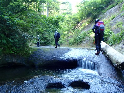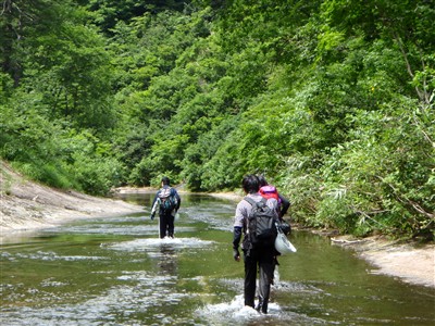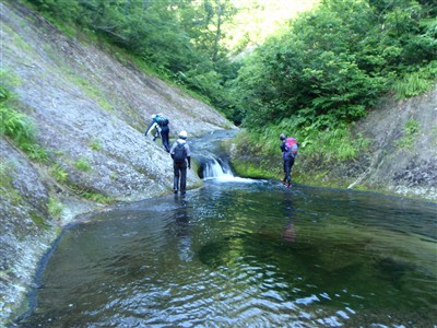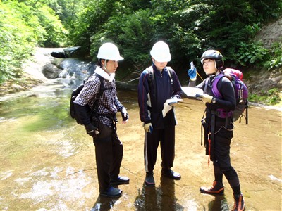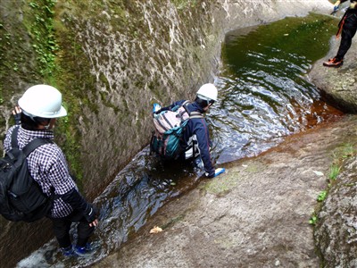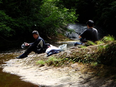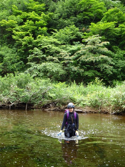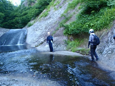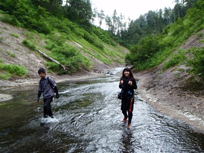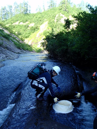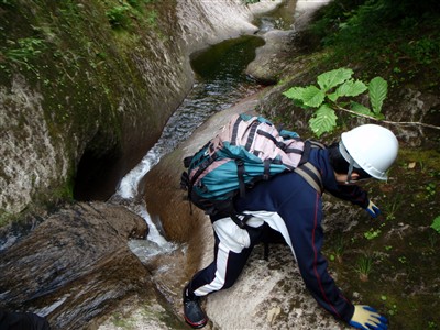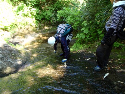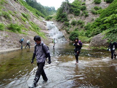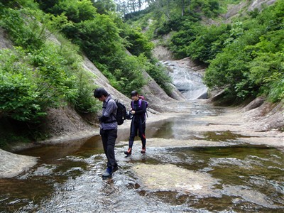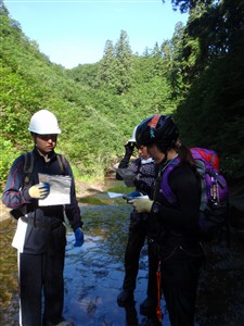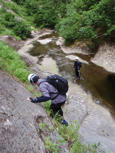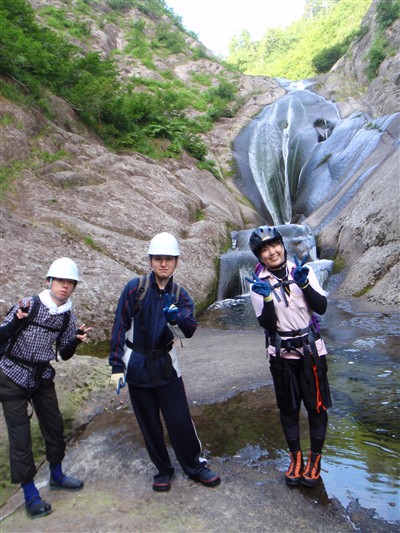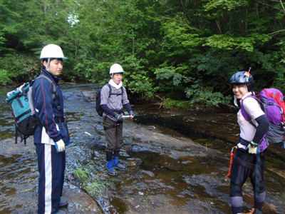 昨年度の2009年9月6日の氷渡洞に続く冒険企画として,今年度は沢登りに学生を連れてきました。
