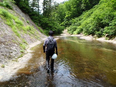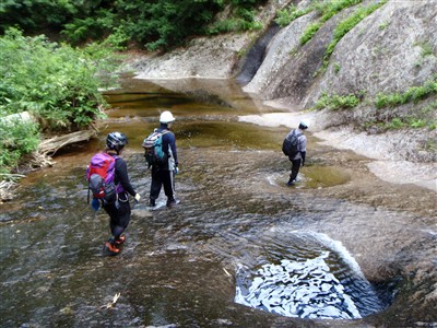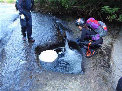 今回の沢には,河床にたくさんのポットホール(甌穴)が見られます。
