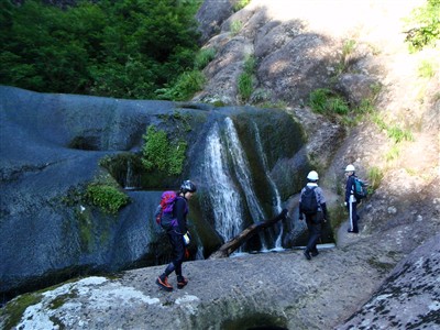 下流に進むにつれて,次第に滝も多くなり,しかも表面が磨かれているようになってきました。