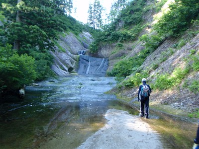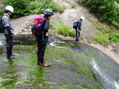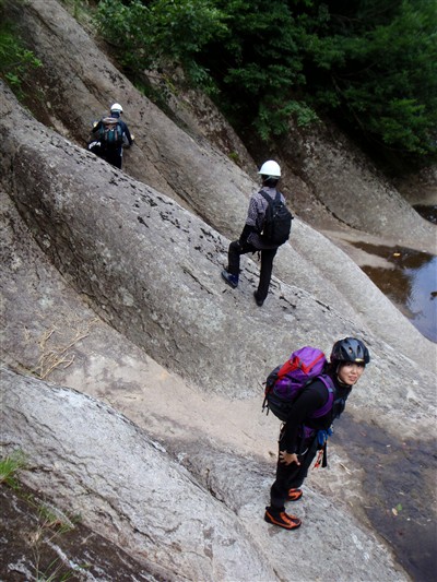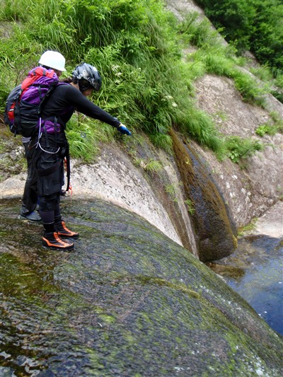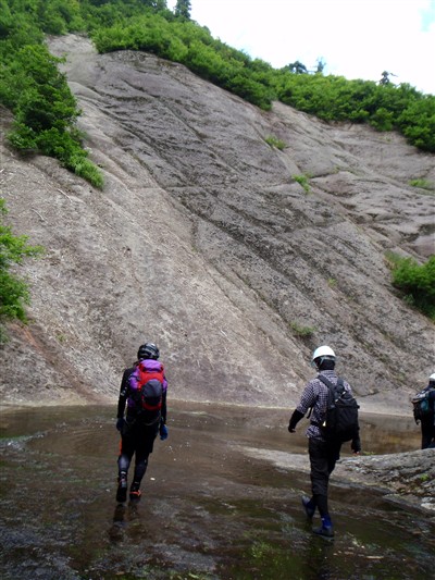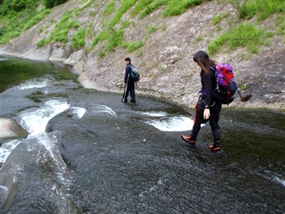 幅広いナメ床を,渓流タビでヒタヒタと歩いて行きます。