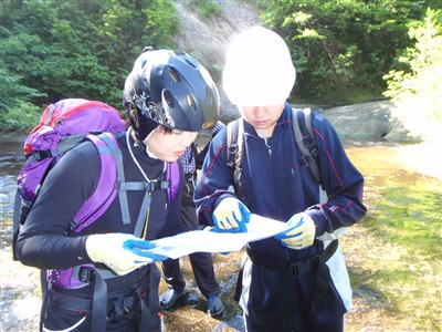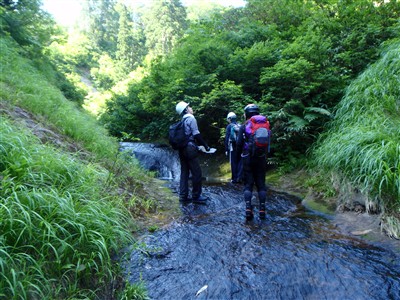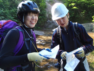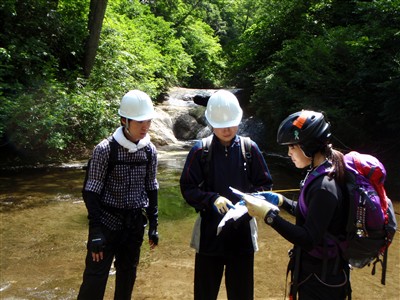 上流は分岐が多いので,沢を間違えないように現在地を全員で確認。