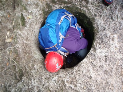 写真のポットホールには一見すると出口がありませんが,トンネルになった排水口があります。