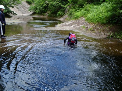 調子に乗って歩いていて,滝で滑って滝下のポットホールに落下してしまった常田君。