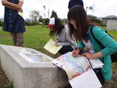 男子学生2人は巡検後の飲み会にしか関心がないようで,解説なんて読みません。