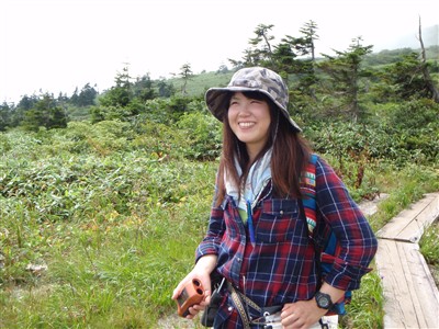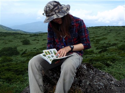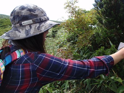 熊見平にて,周囲の植生を観察。