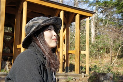 まだ木のニオイがする新しい東屋の前で,ちょっとおすまし。