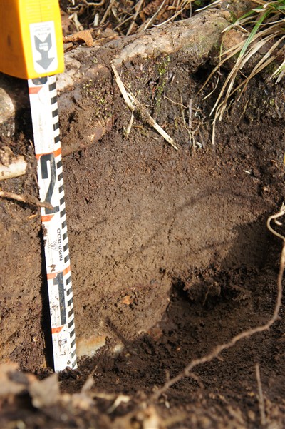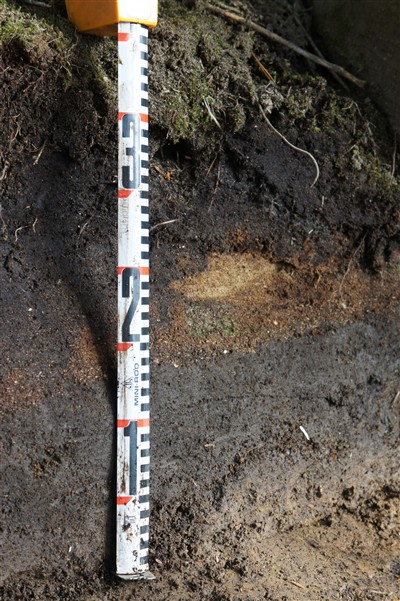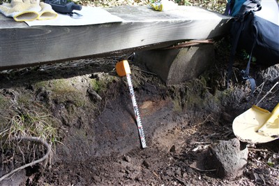 真っ黒な腐植土がせいぜい30cm程度あるだけですが,一部ではTo-aテフラを見つけることができました。