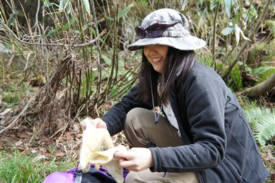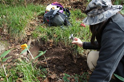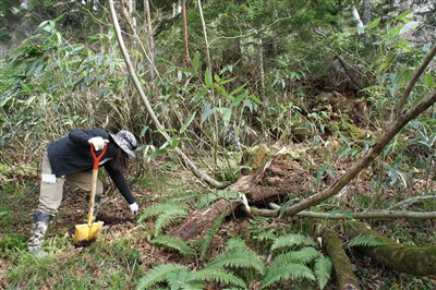 土壌断面のスケッチも終え,これで今野さんの卒業研究のための現地調査は終了です。