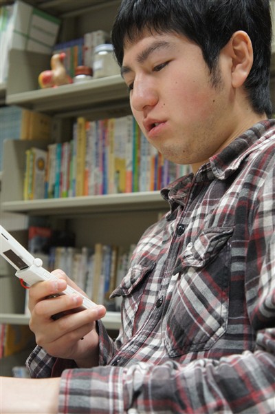 今野さんに食器を洗わせ,自分は携帯電話をいじる常田君。