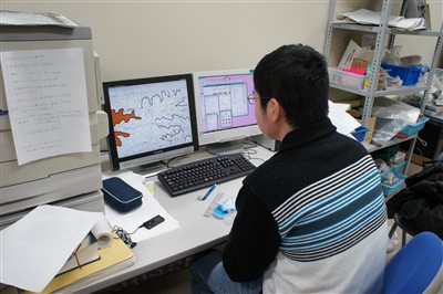 一方,こちらは講座研究室3のパソコンで作業する今野さん。