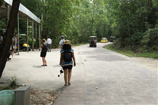 橋を渡ったところから,今度はカートに乗って遺跡に向かいます。