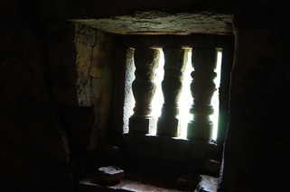 狭い窓なので,屋根が崩れていない建物の内部は,かなり暗いです。