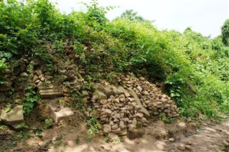 完全に崩壊した遺跡が,レンガの山をなしています。