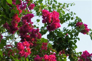 商店の軒先は,色とりどりのブーゲンビリアの花で飾られています。