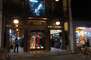 高い建物がなく,店先の照明だけなので,暗闇の中に店だけが照らされていて,祭りの夜店のような雰囲気です。